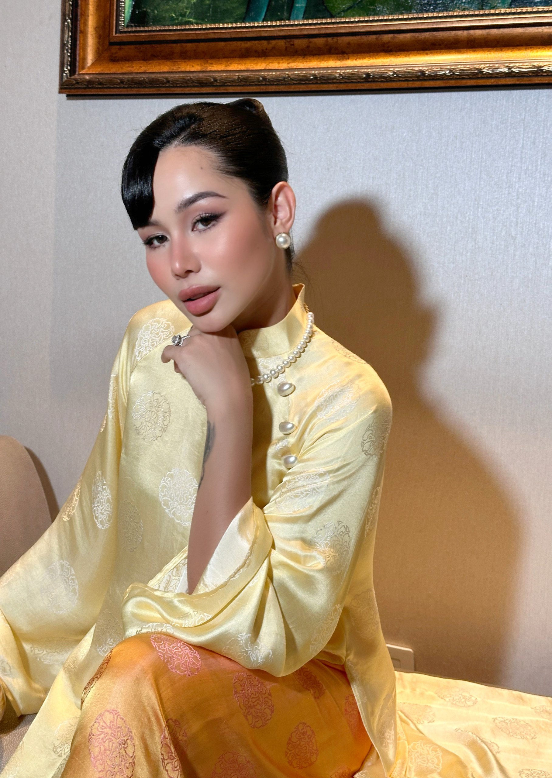 ▪️Áo dài vàng – Quần cam